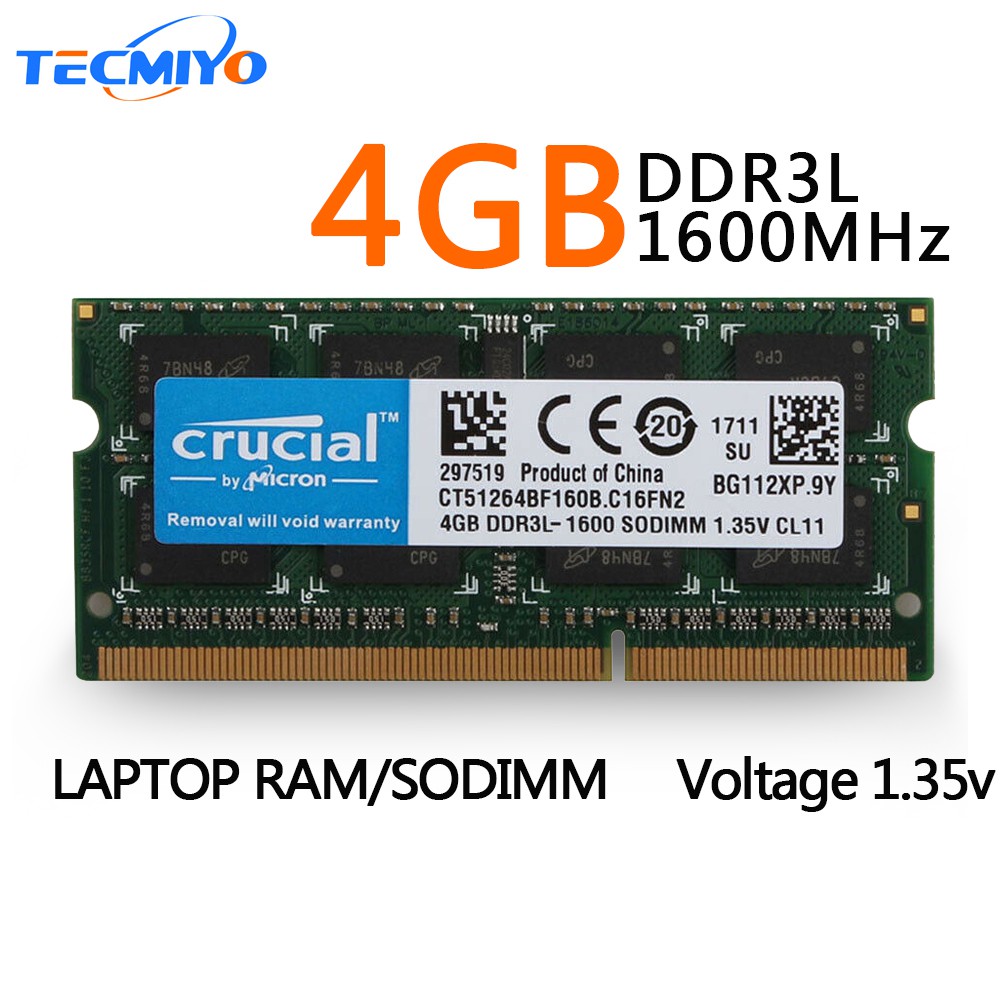 Find many great new & used options and get the best deals for Crucial 4GB DDR3L1600 SODIMM 135V CL11 at the best online prices at eBay!Timetec Hynix IC 8GB DDR3L / DDR3 1600MHz PC3L / PC NonECC Unbuffered 135V / 15V CL11 2Rx8 Dual Rank 4 Pin SODIMM Laptop Notebook Computer Memory RAM Module Upgrade (8GB) 47 out of 5 stars 5,112Buy Crucial 4GB DDR3L1600 UDIMM CTBD160B FREE US Delivery, guaranteed 100% compatibility when ordering using our online tools
